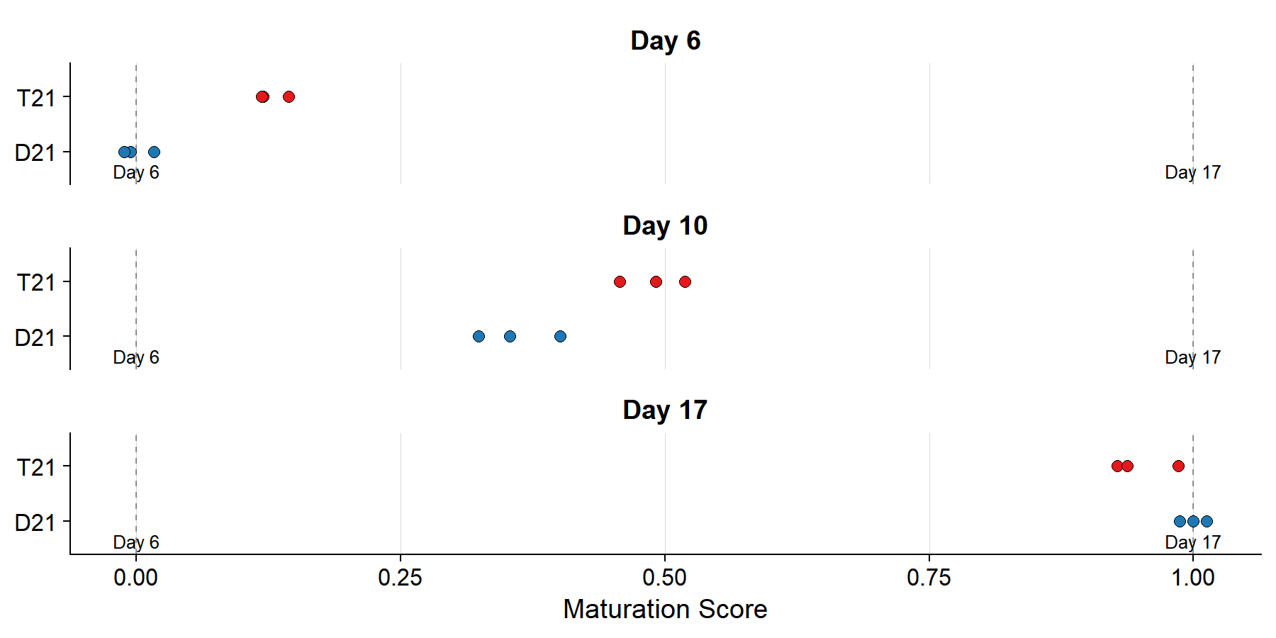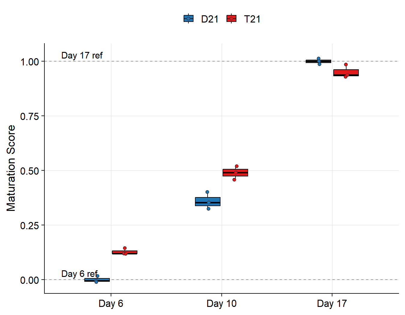 caption = "Maturation score differences (T21 - D21)"